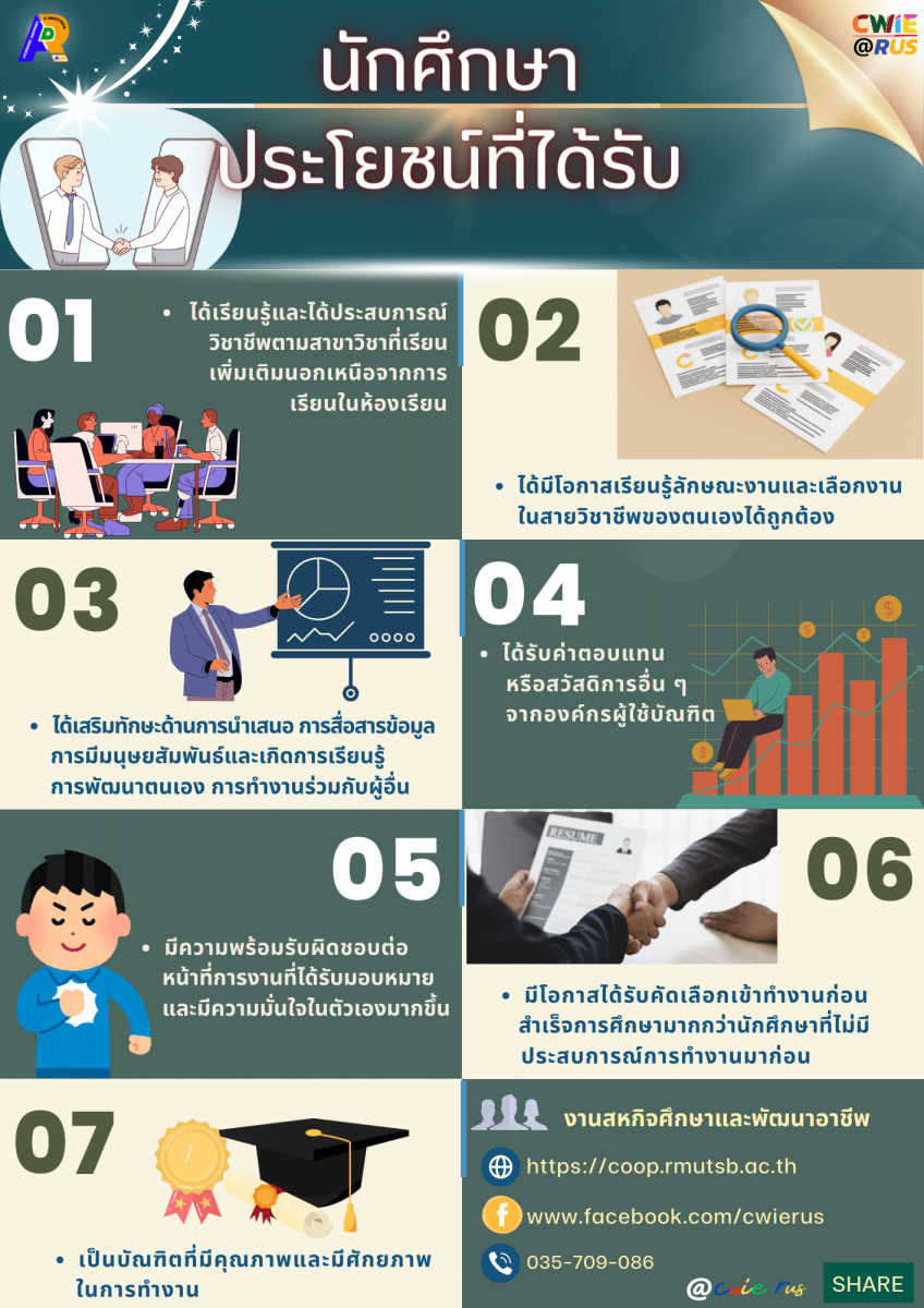 มีโอกาสได้รับคัดเลือกเข้าทำงานก่อนสำเร็จการศึกษามากกว่านักศึกษาที่ไม่มีประสบการณ์การทำงานมาก่อน