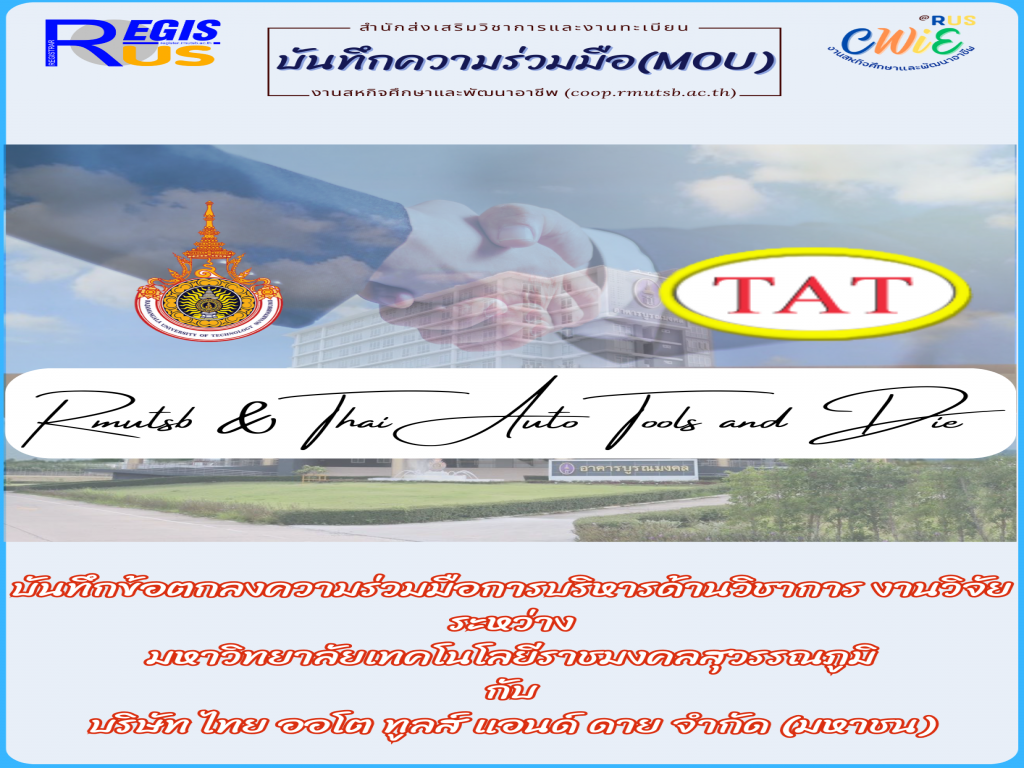 บันทึกข้อตกลงความร่วมมือการบริหารด้านวิชาการ งานวิจัยระหว่างมหาวิทยาลัยเทคโนโลยีราชมงคลสุวรรณภูมิ กับ บริษัท ไทย ออโต ทูลส์ แอนด์ ดาย จำกัด (มหาชน)