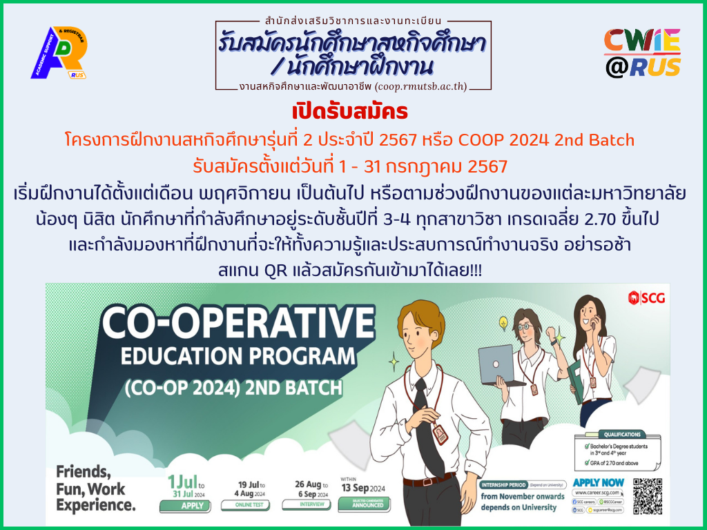 โครงการฝึกงานสหกิจศึกษารุ่นที่ 2 ประจำปี 2567 หรือ COOP 2024 2nd Batch