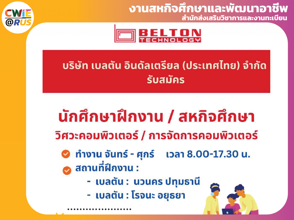 [รับนักศึกษาฝึกงาน/สหกิจศึกษา] บริษัท เบลตัน อินดัลเตรียล (ประเทศไทย) จำกัด