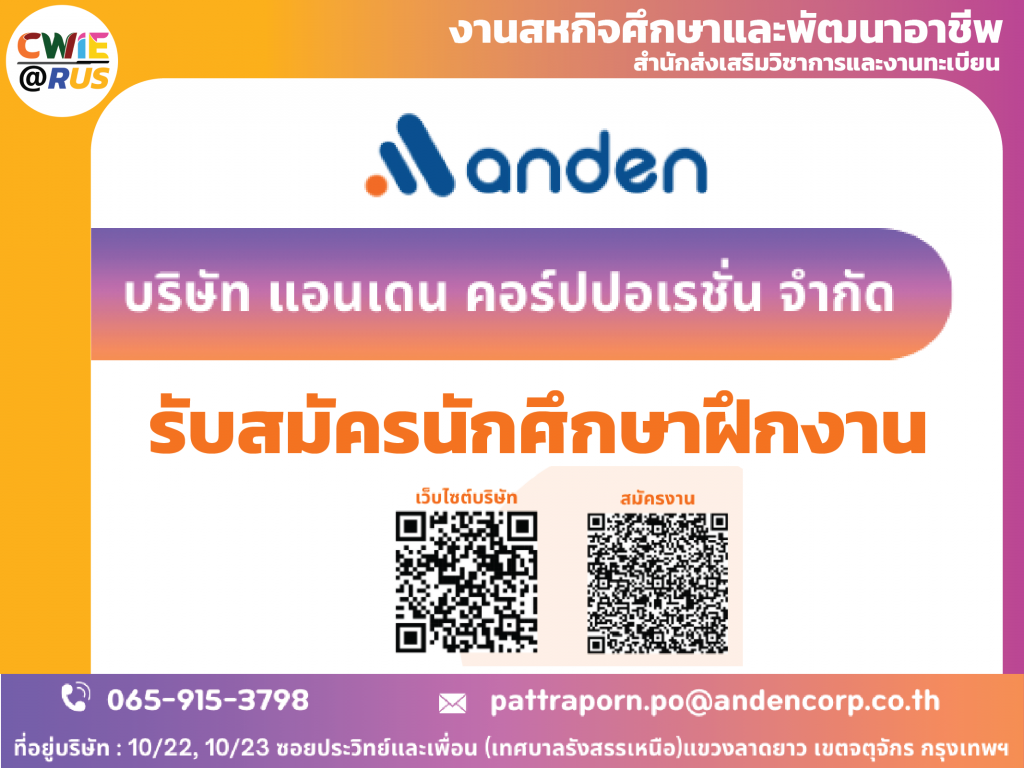 [รับสมัครนักศึกษาฝึกงาน] บริษัท แอนเดน คอร์ปปอเรชั่น จำกัด