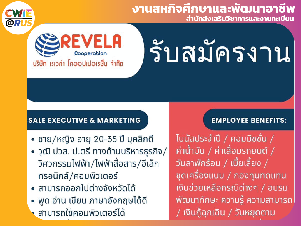 [รับสมัครงาน] บริษัท เรเวล่า โคออปเปอเรชั่น จำกัด