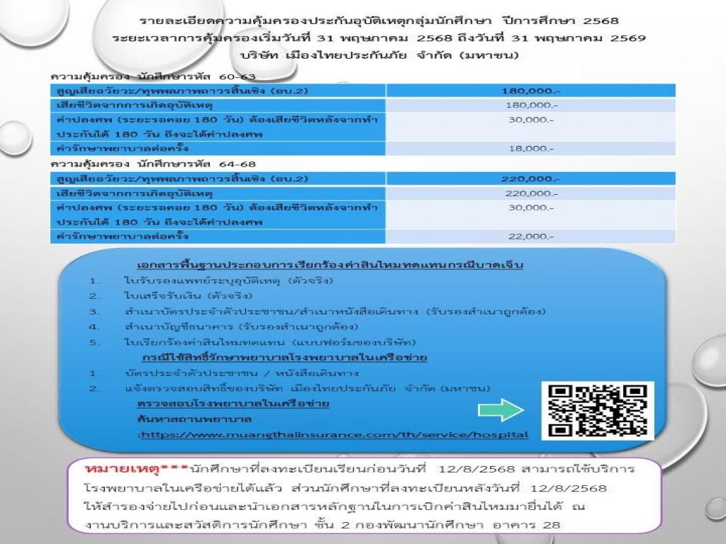 ข้อมูลความคุ้มครองประกันอุบัติเหตุกลุ่มนักศึกษา ปีการศึกษา 2568