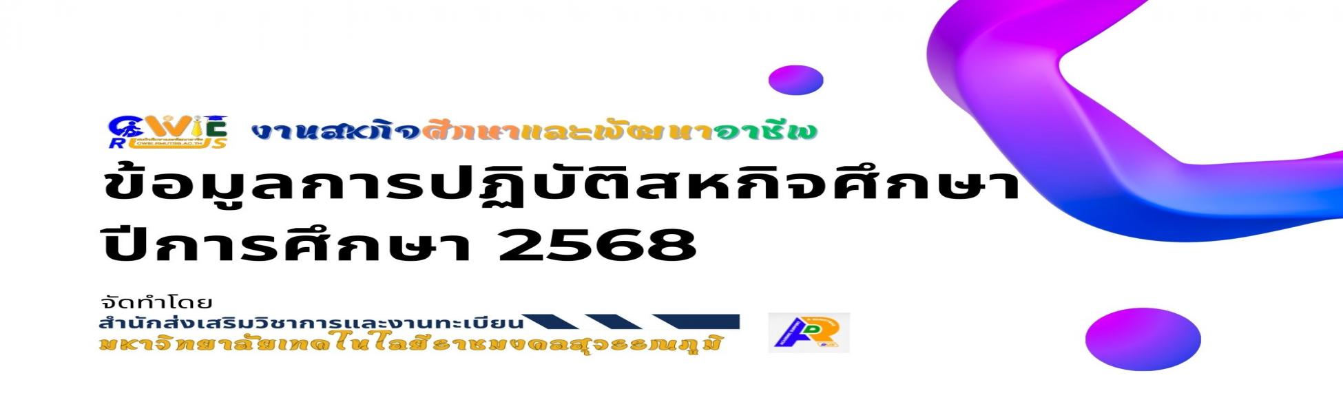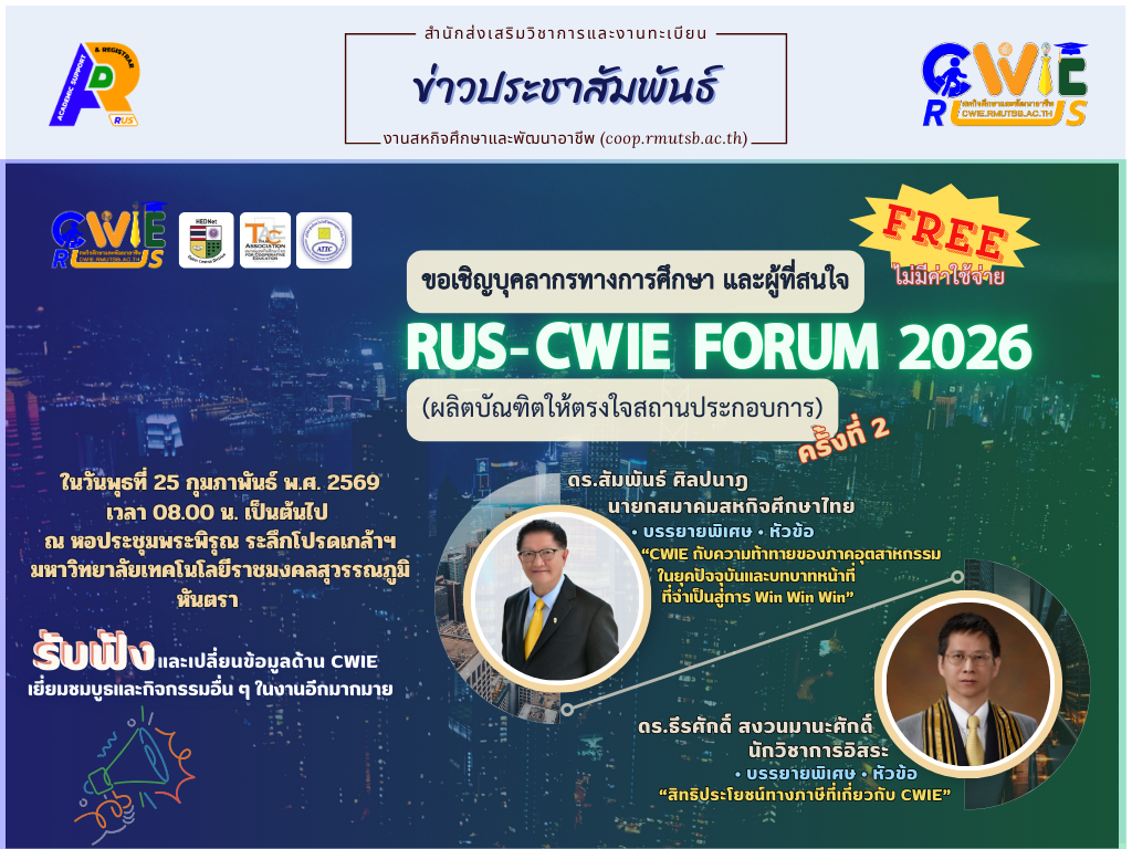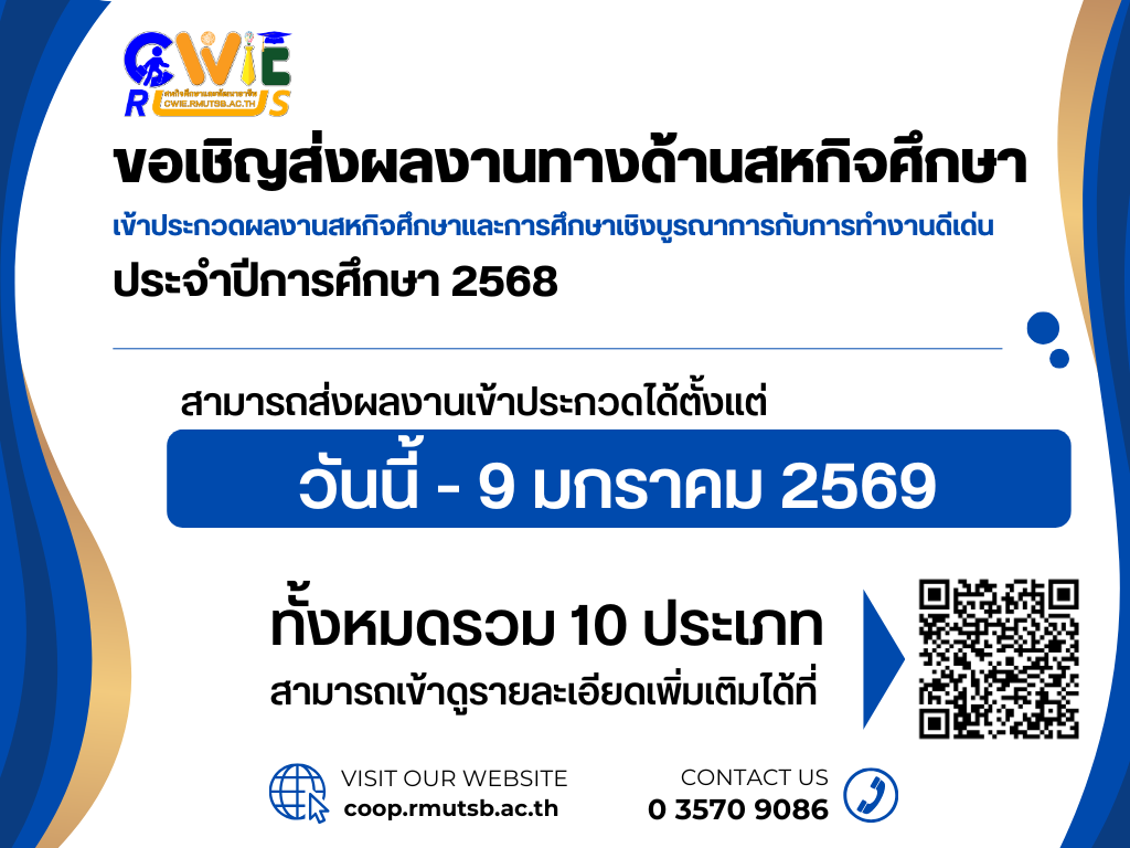ขอเชิญส่งผลงานทางด้านสหกิจศึกษา เข้าประกวดผลงานสหกิจศึกษาและการศึกษาเชิงบูรณาการกับการทำงานดีเด่น ประจำปีการศึกษา 2568