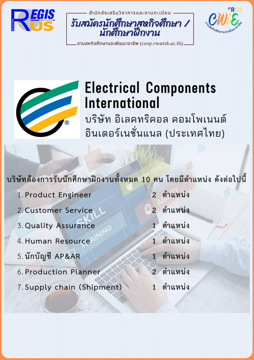 บริษัท อิเลคทริคอล คอมโพเนนต์ อินเตอร์เนชั่นแนล (ประเทศไทย) มีความต้องการรับนักศึกษาเข้าฝึกงานที่ประเทศจีน