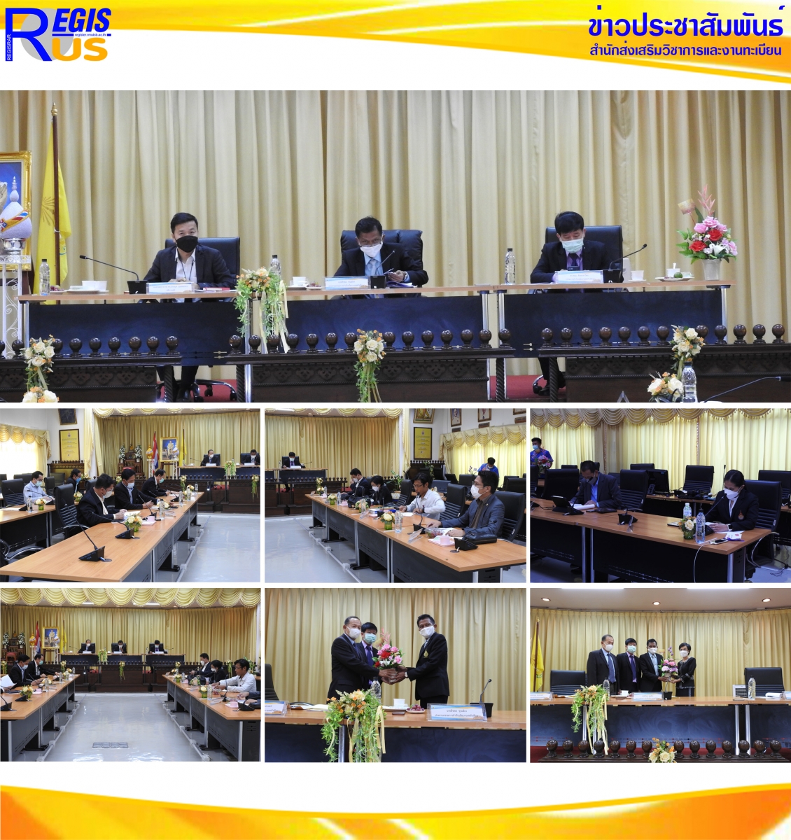 สำนักส่งเสริมวิชาการและงานทะเบียน ศูนย์สหกิจศึกษาและพัฒนาอาชีพ จัดประชุมคณะกรรมการกำกับนโยบายสหกิจศึกษา ครั้งที่ 2/2564 เมื่อวันศุกร์ที่ 12 พฤศจิกายน 2564 ณ ห้องประชุมสภามหาวิทยาลัย อาคารราชมงคล 36 มหาวิทยาลัยเทคโนโลยีราชมงคลสุวรรณภูมิ ศูนย์นนทบุรี (เขตใต้) เพื่อพิจารณาการจัดหลักสูตร Work-integrated Learning : WIL /Cooperative and Work Integrated Education Program : CWIE โดยมี รองศาสตราจารย์ ดร.ประมุข อุณหเลขกะ อธิการบดีมหาวิทยาลัยเทคโนโลยีราชมงคลสุวรรณภูมิ ให้การต้อนรับ นายธีรพล ขุนเมือง ประธานกรรมการ ผู้ทรงคุณวุฒิ และคณะกรรมการกำกับนโยบายสหกิจศึกษา และแสดงความยินดีกับ นายธีรพล ขุนเมือง ที่ได้รับการแต่งตั้งเป็นกรรมการกำหนดตำแหน่งระดับที่สูงของสำนักงานคณะกรรมการพิเศษ เพื่อประสานงานโครงการอันเนื่องมาจากพระราชดำริ (สำนักงาน กปร.) และแสดงความยินดีกับ ผู้ช่วยศาสตราจารย์ ดร.สาลินันท์ บุญมี ที่รับการแต่งตั้งดำรงตำแหน่งรองอธิการบดีมหาวิทยาลัยเทคโนโลยีราชมงคลสุวรรณภูมิ