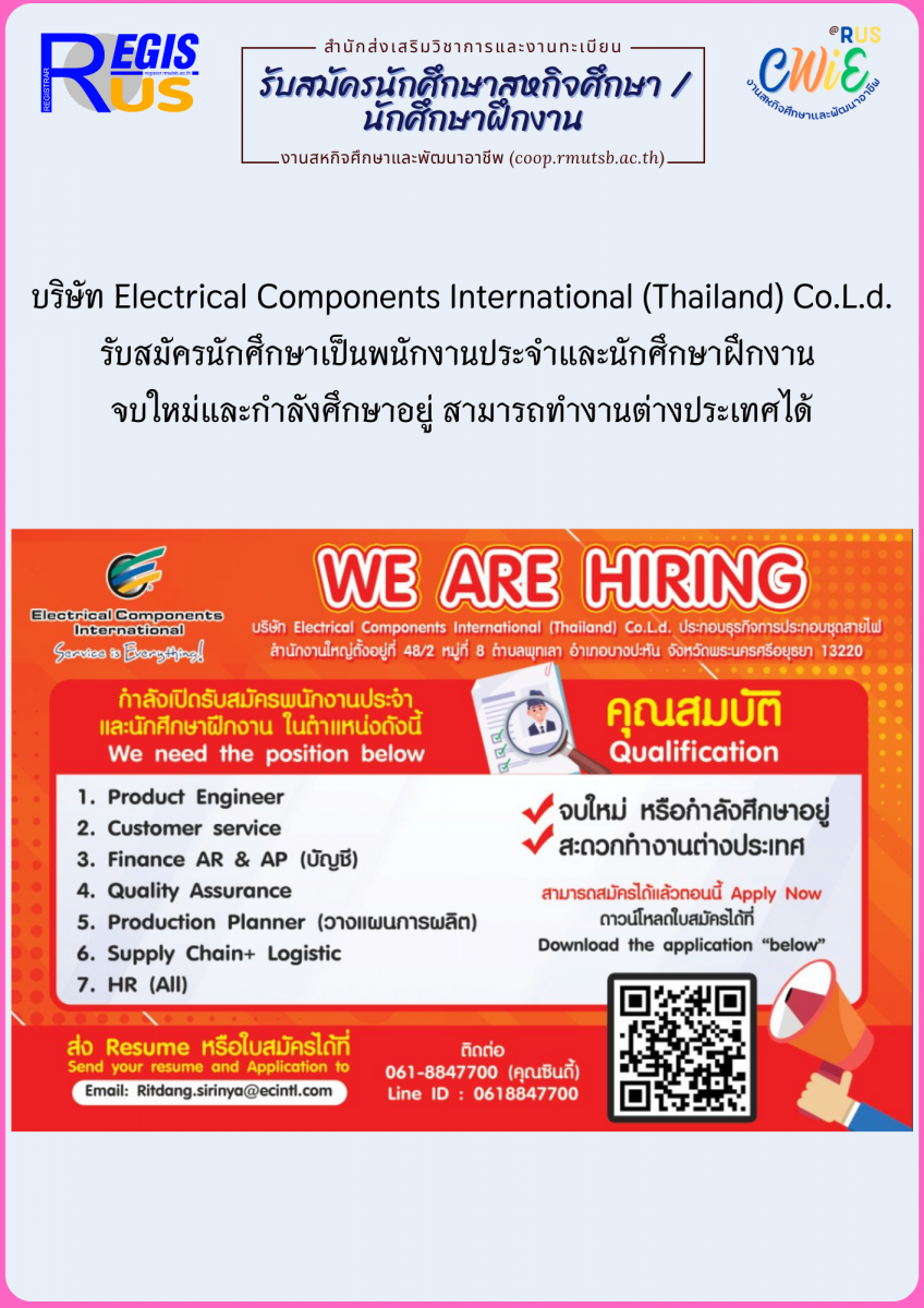 รับสมัครนักศึกษาเป็นพนักงานประจำและนักศึกษาฝึกงาน