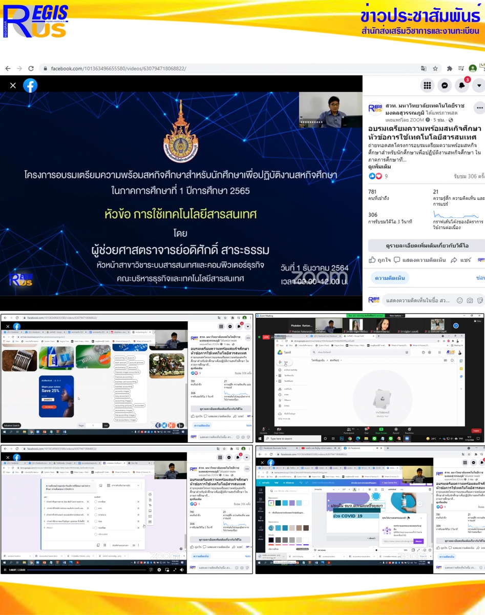 สำนักส่งเสริมวิชาการและงานทะเบียน ศูนย์สหกิจศึกษาและพัฒนาอาชีพ จัดโครงการอบรมเตรียมความพร้อมสหกิจศึกษาสำหรับนักศึกษา เพื่อปฏิบัติงานสหกิจศึกษา ในภาคการศึกษาที่ 1 ปีการศึกษา 2565 ครั้งที่ 2 เมื่อวันพุธที่ 1 ธันวาคม 2564 ในหัวข้อ การใช้เทคโนโลยีสารสนเทศ บรรยายโดย ผู้ช่วยศาสตราจารย์อดิศักดิ์ สาระธรรม หัวหน้าสาขาวิชาระบบสารสนเทศและคอมพิวเตอร์ธุรกิจ คณะบริหารธุรกิจและเทคโนโลยีสารสนเทศ รูปแบบออนไลน์ ด้วยสื่ออิเล็กทรอนิกส์ผ่านโปรแกรม Zoom และเผยแพร่ผ่าน Facebook สวท. มหาวิทยาลัยเทคโนโลยีราชมงคลสุวรรณภูมิ