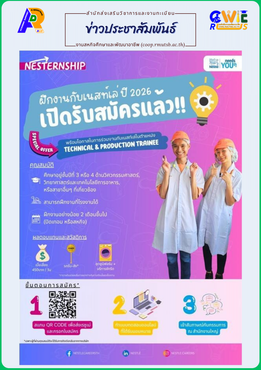 ฝึกงานกับเนสท์เล่ ปี 2026