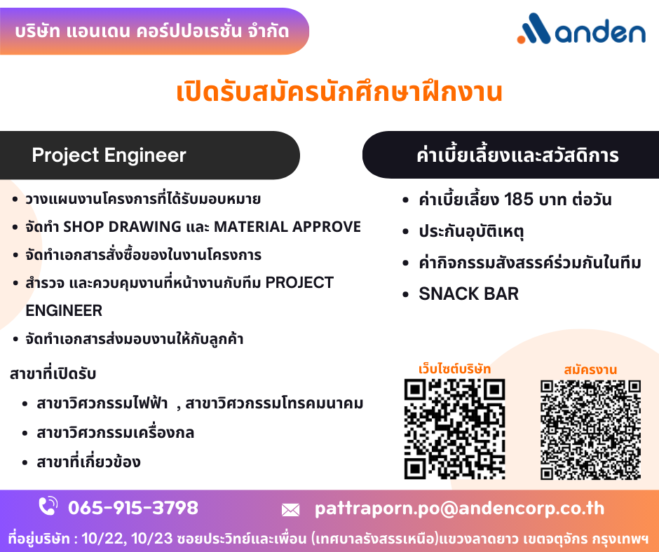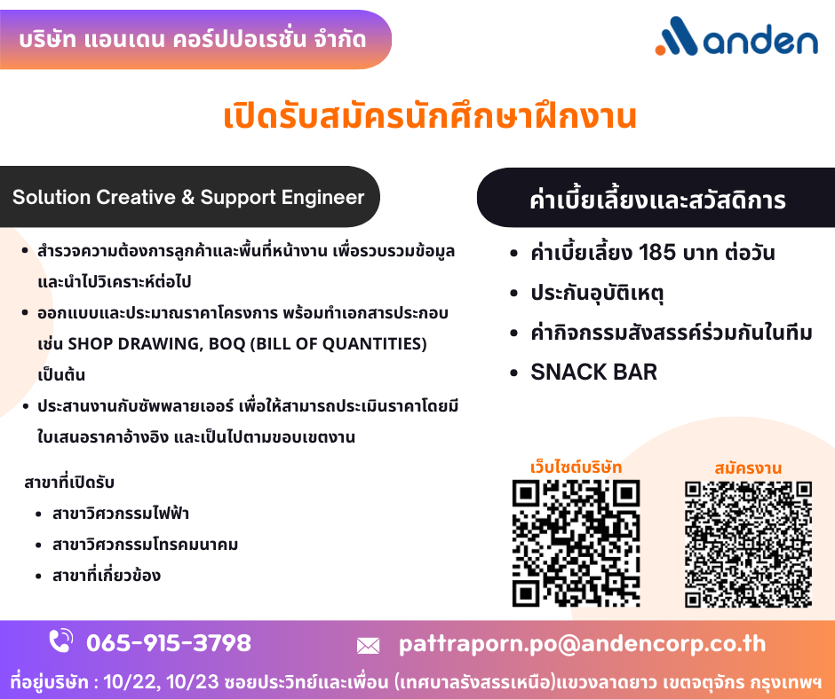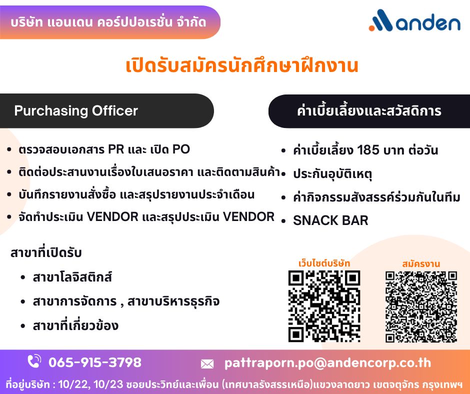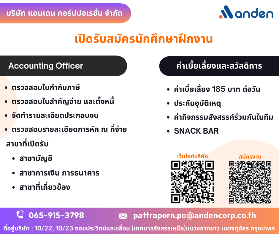 [รับสมัครนักศึกษาฝึกงาน] บริษัท แอนเดน คอร์ปปอเรชั่น จำกัด