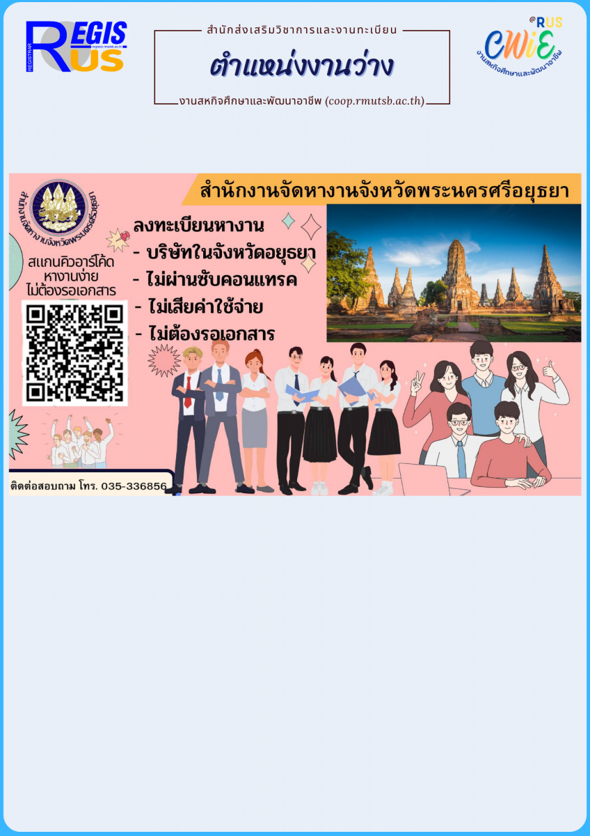 สำนักงานจัดหางานจังหวัดพระนครศรีอยุธยา ประชาสัมพันธ์สแกนคิวอาร์โค้ด หางานง่ายไม่ต้องรอเอกสาร