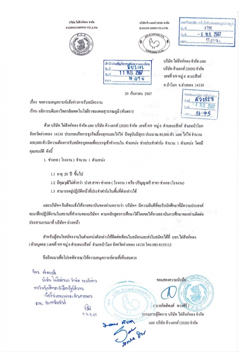รับสมัครนักศึกษาฝึกปฏิบัติงาน บริษัท ไผ่สิงห์ทอง จำกัด และ บริษัท คิว-เอกส์ (2020) จำกัด