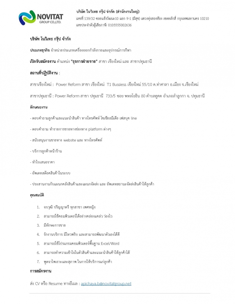 [รับสมัครงาน] บริษัท โนวิเทธ กรุ๊ป จำกัด