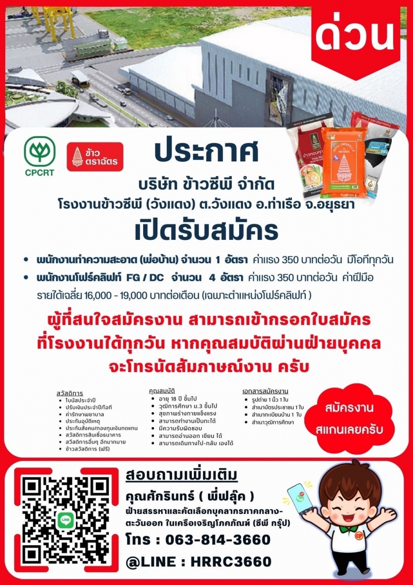 [รับสมัครงาน] บริษัท ข้าวซีพี จำกัด