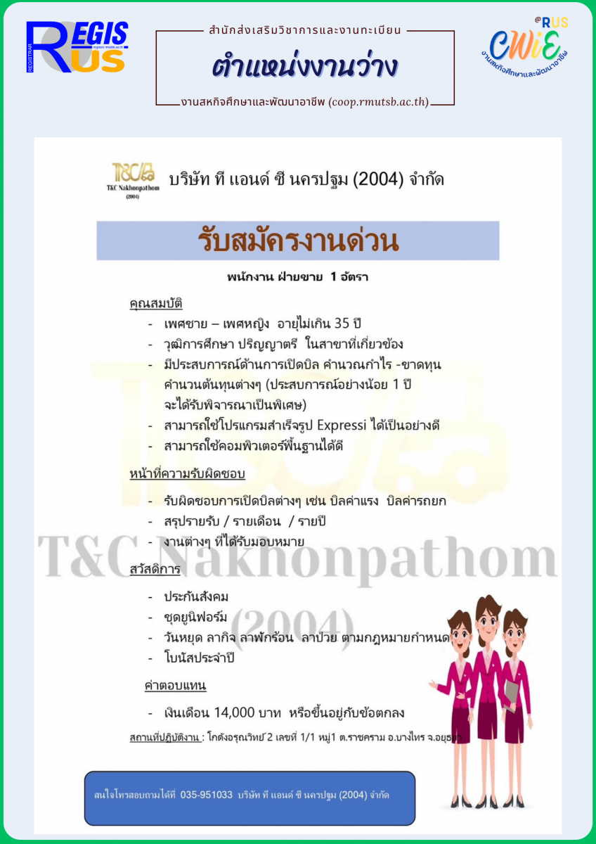 บริษัท ที แอนด์ ซี นครปฐม (2004) จำกัด รับสมัครงานด่วน