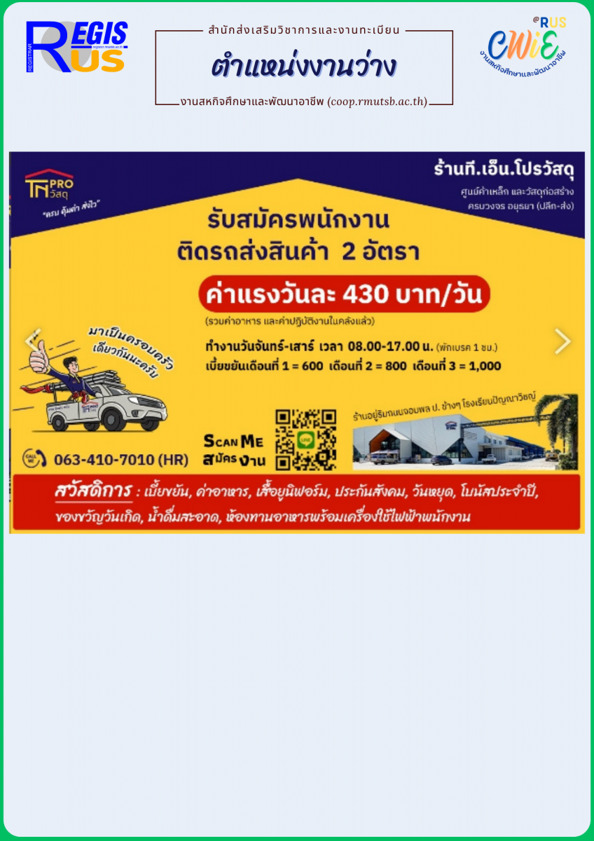 รูปภาพเพิ่มเติมเพจสหกิจศึกษาและพัฒนาอาชีพ FB FANPAGE : facebook.com/cwierus